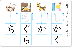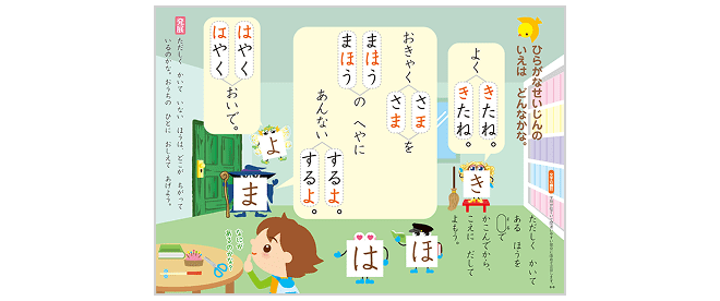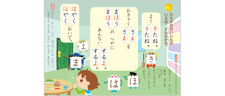 10月号までの7冊で、ひらがなの清音と濁音・半濁音をすべて学べる大ボリュームのワーク。