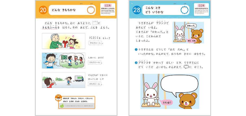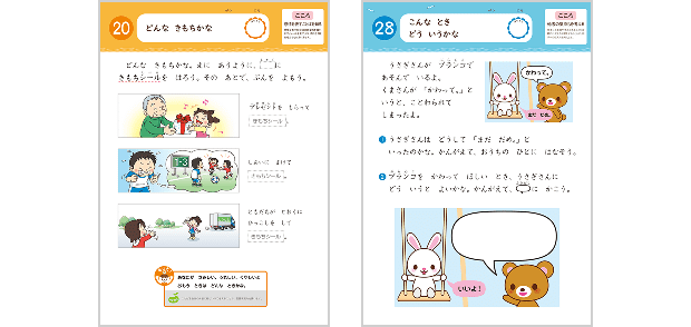 つまずきやすい問題をサポートするコーナー、「ピックアップ問題」が新登場!そのほか、気持ちの表現や他者との関係性をテーマとした出題も。