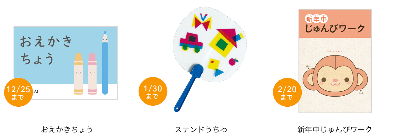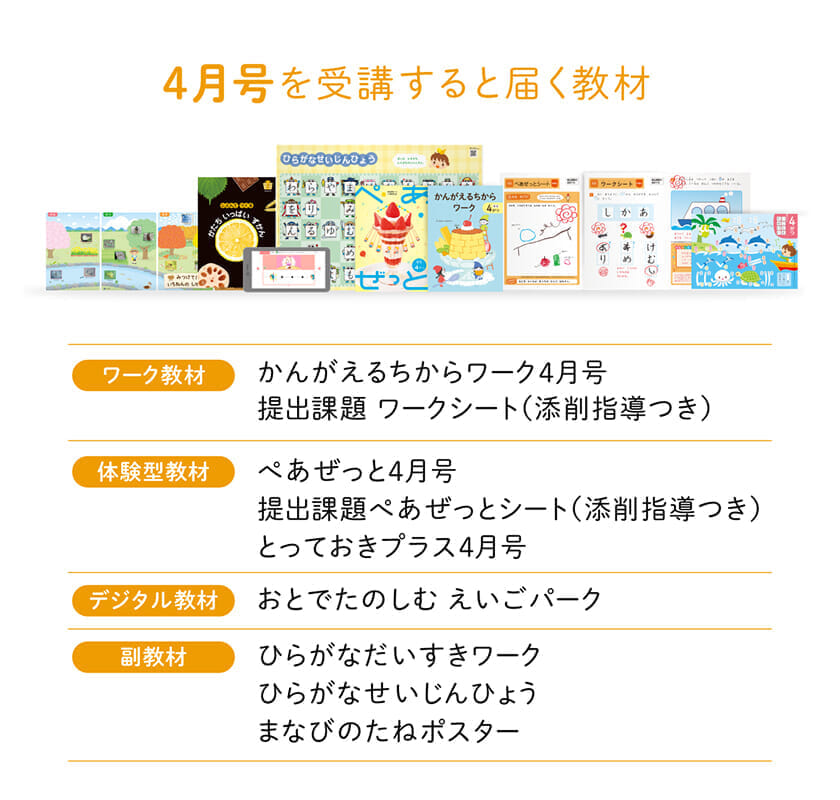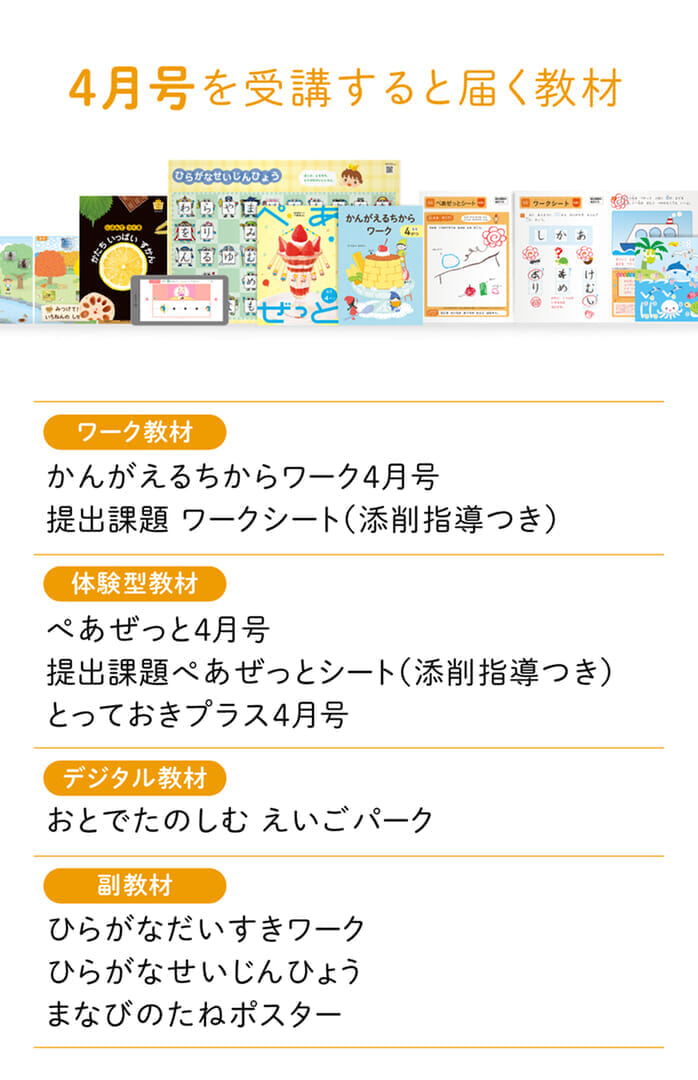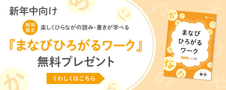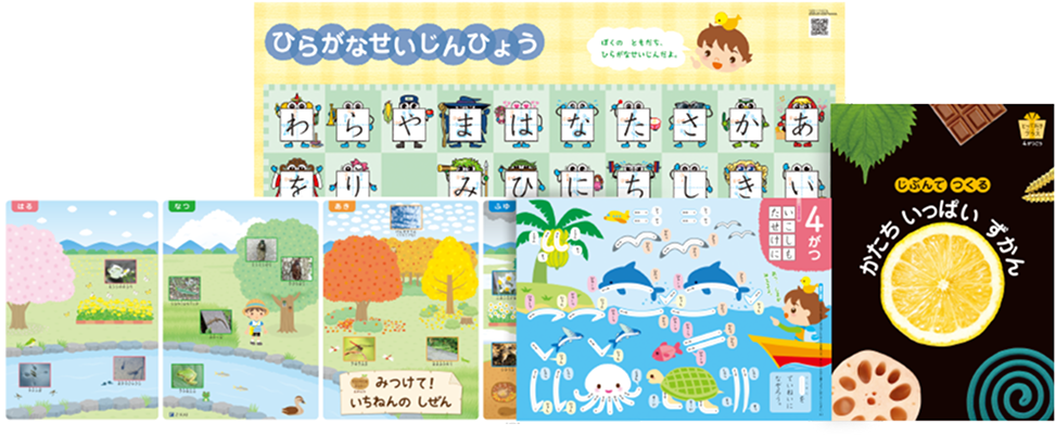 知識が増えるポスターが新登場!より充実した副教材で、「もっとやりたい」意欲を引き出します。ひらがな学習もしっかりサポート!
