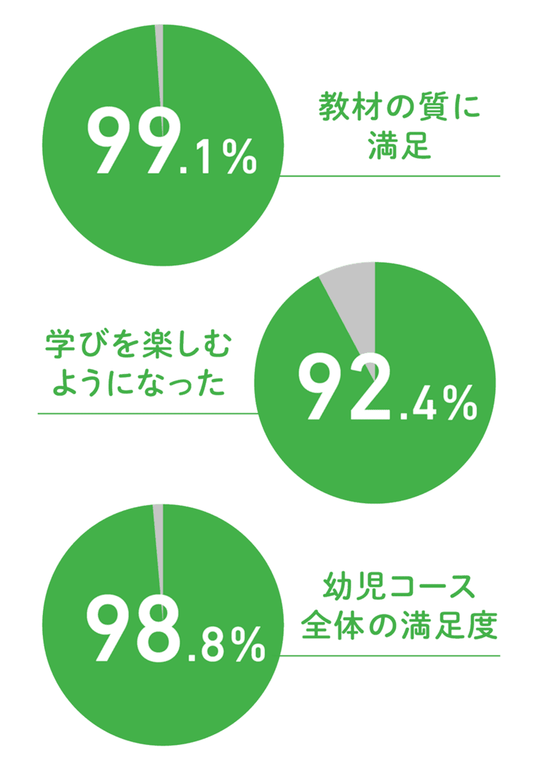 ※2025年度Z会幼児コース会員アンケートにて「満足」「やや満足」もしくは「そう思う」「ややそう思う」と回答した合計数より算出(回答数422名)