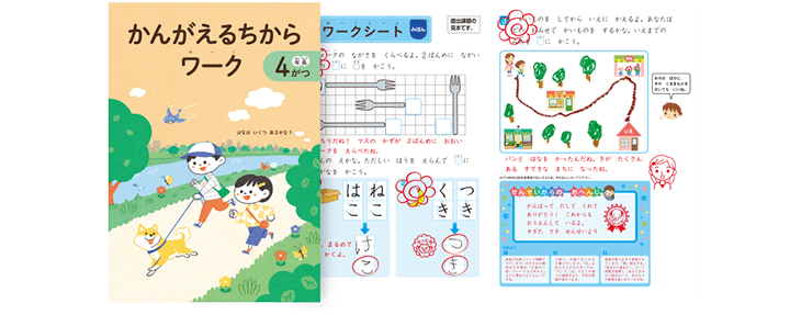 まちがい探しや迷路、文字や数の学習、知識問題、論理問題など、さまざまな角度からの出題で学ぶ意欲と思考力が高まります。