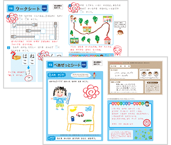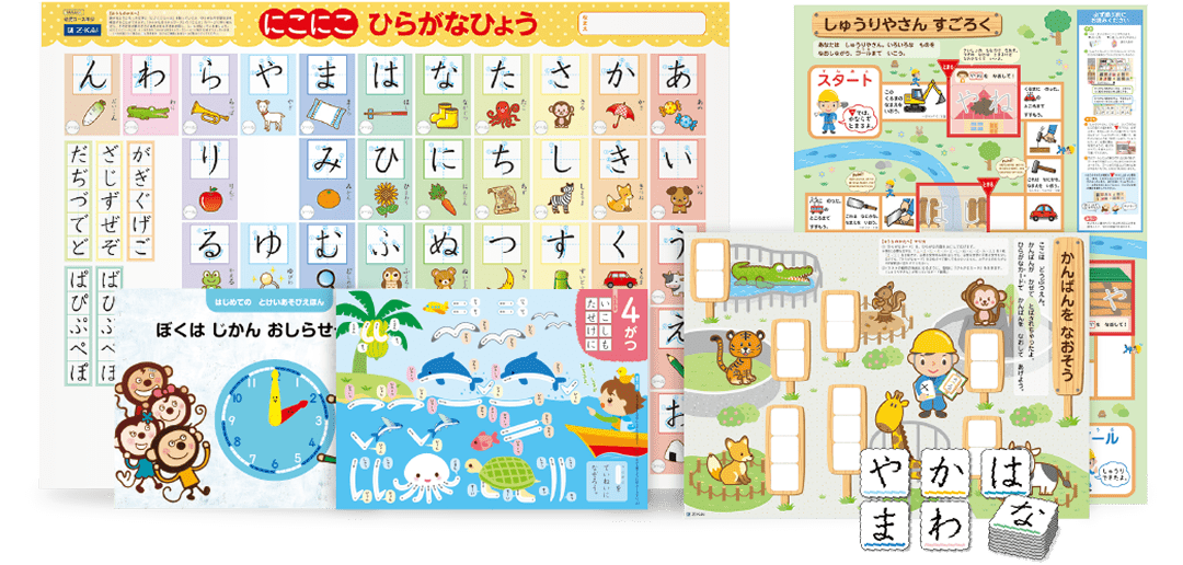 学びにつながる工夫が満載で、持ち運びにも便利なミニ絵本型教材です。