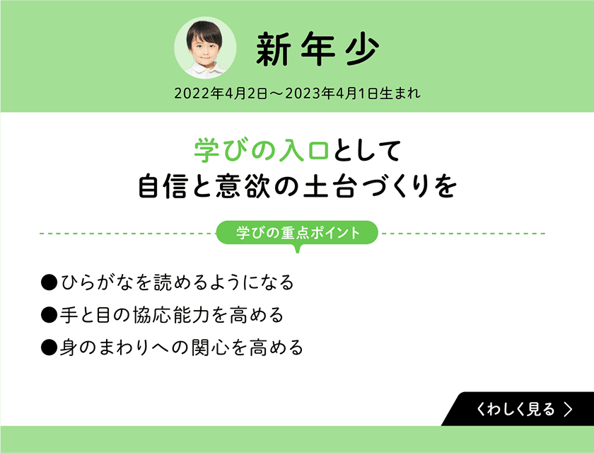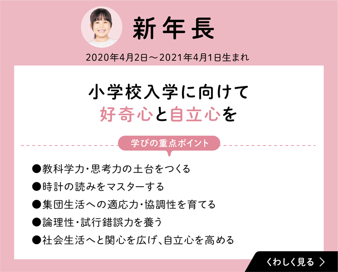 お子さまが自然と興味を持つ内容で、知識や自発性を伸ばします。