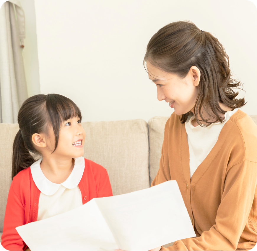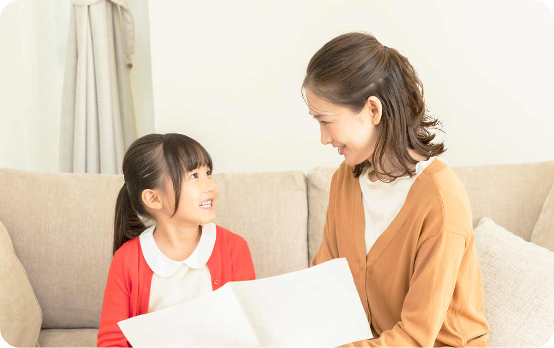 お子さまの発想を受け止め、良いところを丁寧に伝えます。信頼関係のある人から頑張りを認めてもらうことは、喜びや意欲につながります。