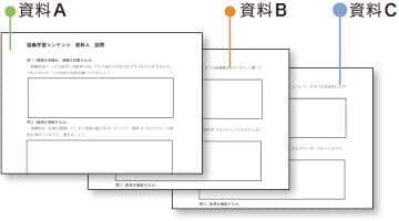 グループごとに異なるA~Cの関連資料を読み、付随する設問に各自で取り組みます。