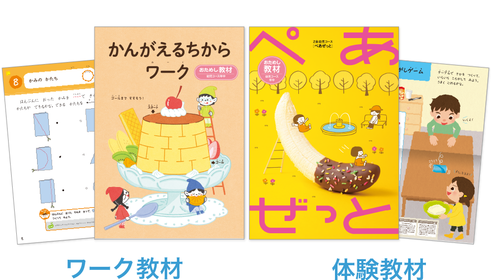 幼児コース年中では、「できるようになりたい」気持ちを応援するワーク類や、特別感のある体験課題で「学ぶ楽しさ」をたっぷりと味わえます。