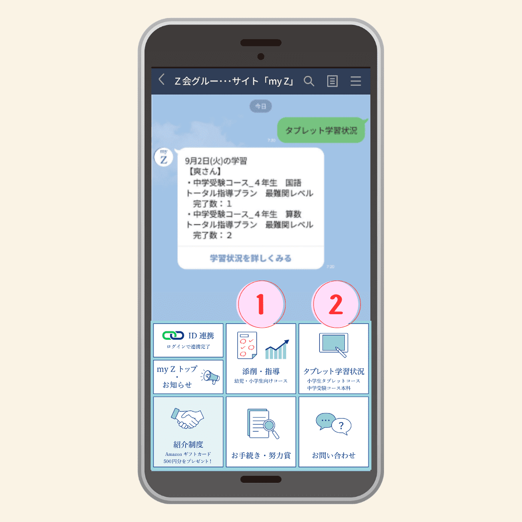 ※LINEトーク画面から、「my Z」の添削・指導画面にアクセスできます。添削済み答案や成績の確認はこちらから。