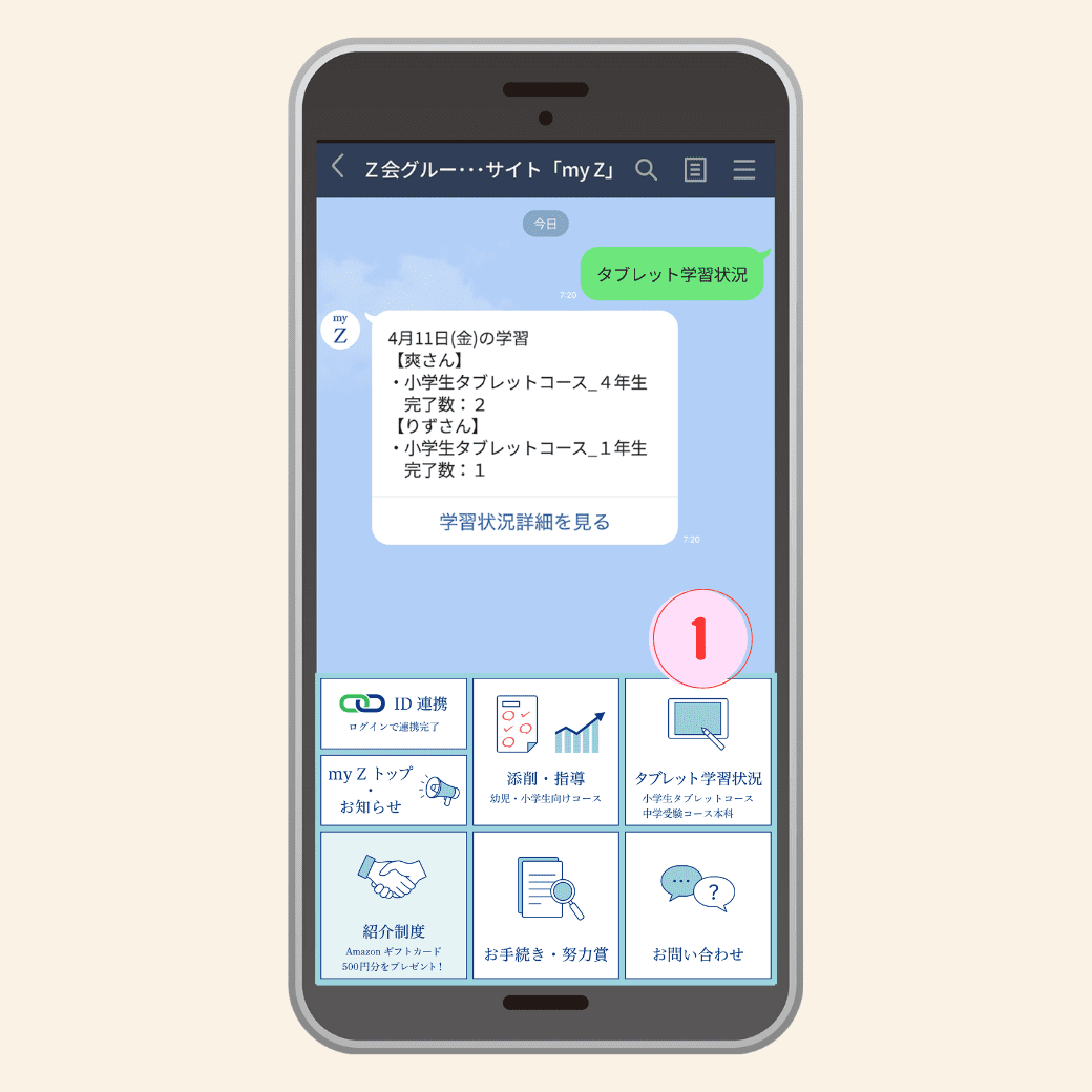 ※LINEトーク画面で、今日の学習数を手軽に確認できます。