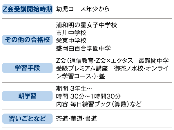 実は、娘の2月の受験プランは、1日に桜陰、2日に豊島岡、ここで2連敗したらもう一回豊島岡、3連敗したらもう一回豊島岡という、超強気のプランだったんです。「全滅したらどうするの?」と思って私は反対したのですが、Z会の先生方の「第一志望の旗はおろしちゃいけない」「1月の受験校と午後入試を受けておけば、安心できるから」という後押しもあって、結局、娘の希望通りのプランでいくことにしたんです。結果、娘は有言実行。自分で立てた目標をみごと達成したことを思うと、本当に成長したなぁと思います。親子ともに満足感でいっぱいの受験になりました。