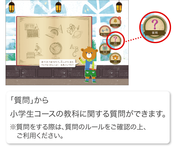 『エブリスタディ』『エブリスタディ 答えと考え方』を読んでもわからない問題は、「Z会小学生アプリ」から質問ができます。「Z会小学生アプリ」のトップ画面の「質問」からご質問ください。