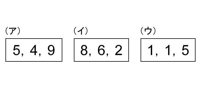 数字が3つ書かれたカードがあります。(ア)(イ)(ウ)のうち、「3より小さい数が書かれたカード」をすべて選んでください。