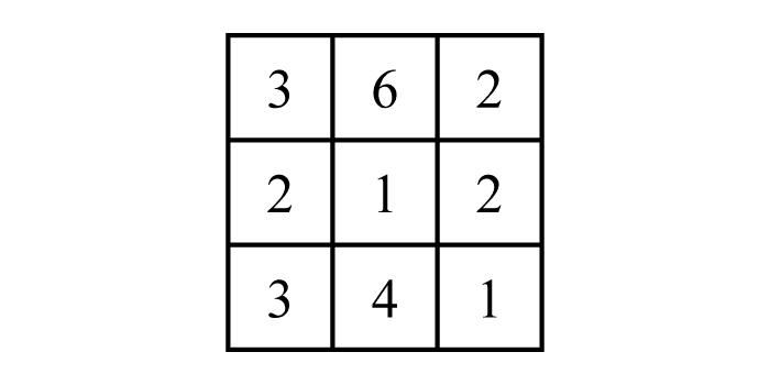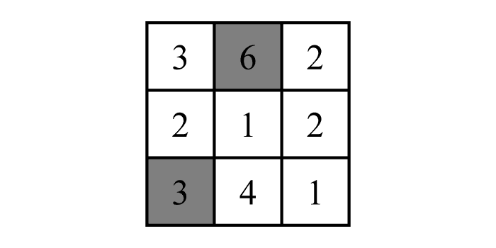 数字の書かれたパネルがあります。このパネルのマスをいくつかぬりつぶし、残った数字の和が、縦・横どの列も5になるようにしてください。