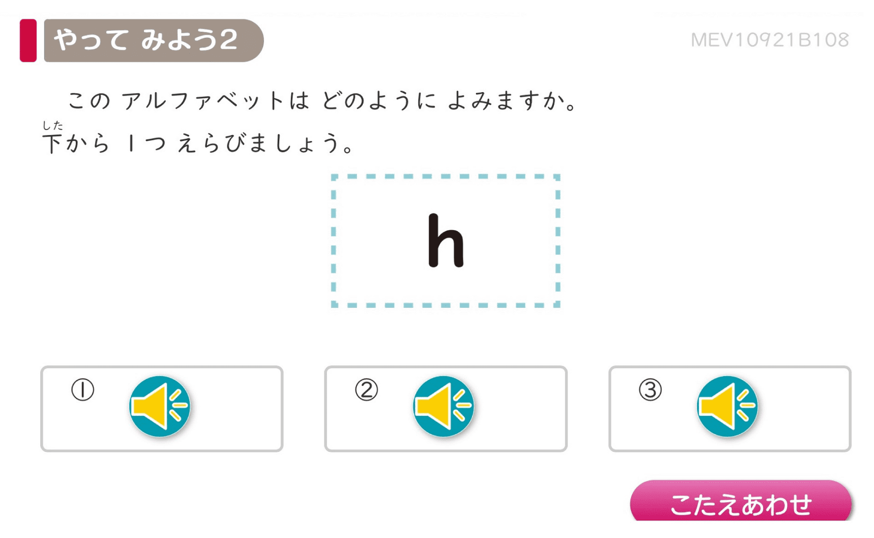 アルファベットのコーナーではs, zの音を学習します。発音をしっかりと聞くと、日本語の「ス」「ズ」とは音が少し違うことに気づくでしょう。アルファベットのキャラクターのまねをしながら、発音を楽しみつつ、英語らしい発音を会得する第一歩になることを目的としています。