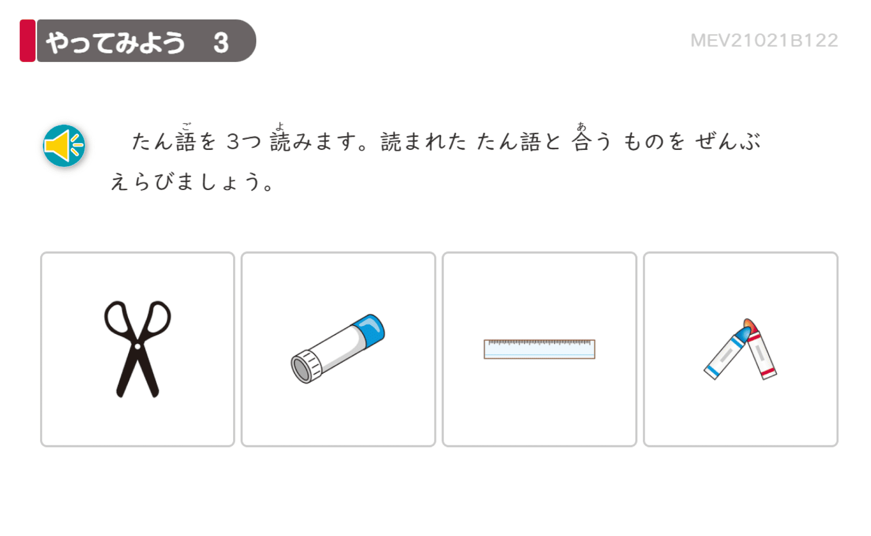 毎月1回タブレットを見ているだけでは発音のルールはなかなか身につかないので、アニメーションのリズムに合わせた発音練習を繰り返し行うのがおすすめです。また、いきなりリズムにのせて完璧に発音するのは難しいという方は、まずは聞くだけでもよいです。たくさん聞くうちに、アルファベットが単語のまとまりのなかだとどんな音になるかという発音のルールが少しずつわかってきます。そうすると、声に出す照れくささもなくなり、聞こえた音をまねして声に出す力も育っていくことでしょう。