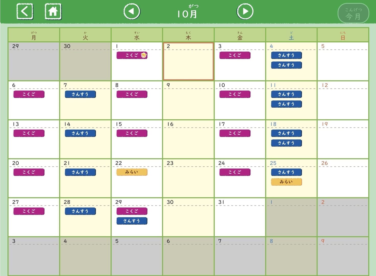 毎月配信されるスケジュールをベースに、習いごとや学校行事、外出予定などを加味して、お子さま独自の計画を立ててください。