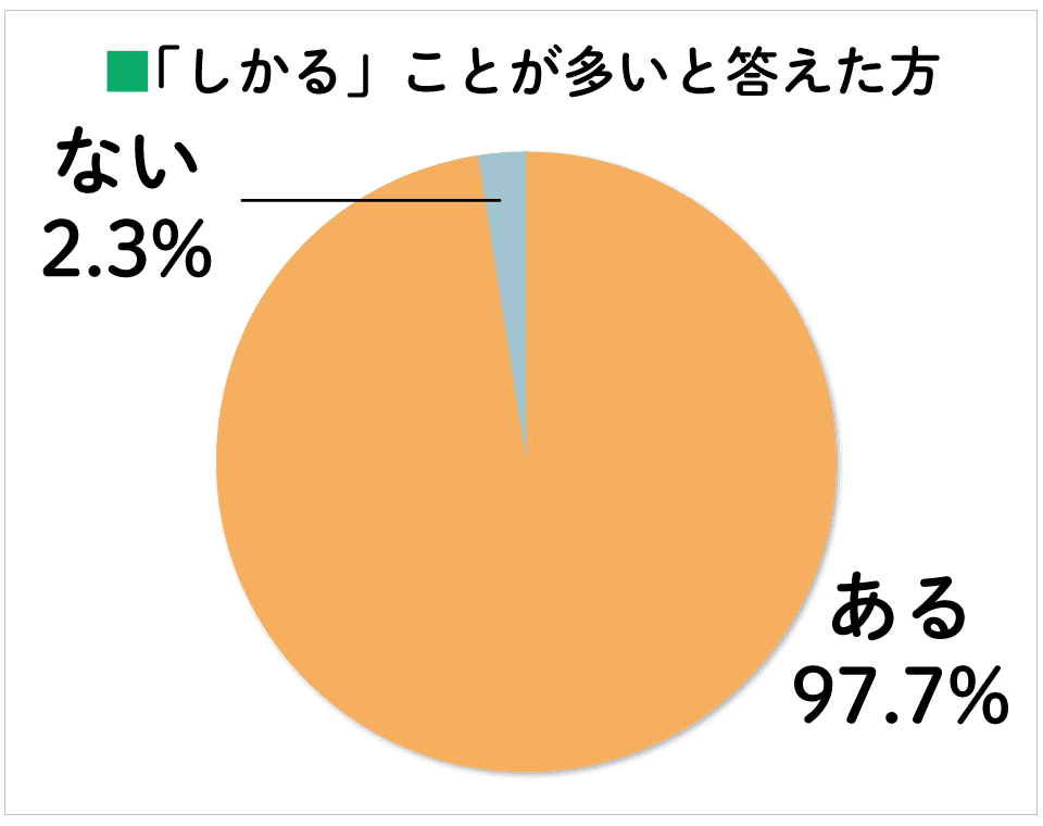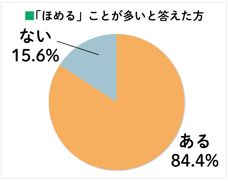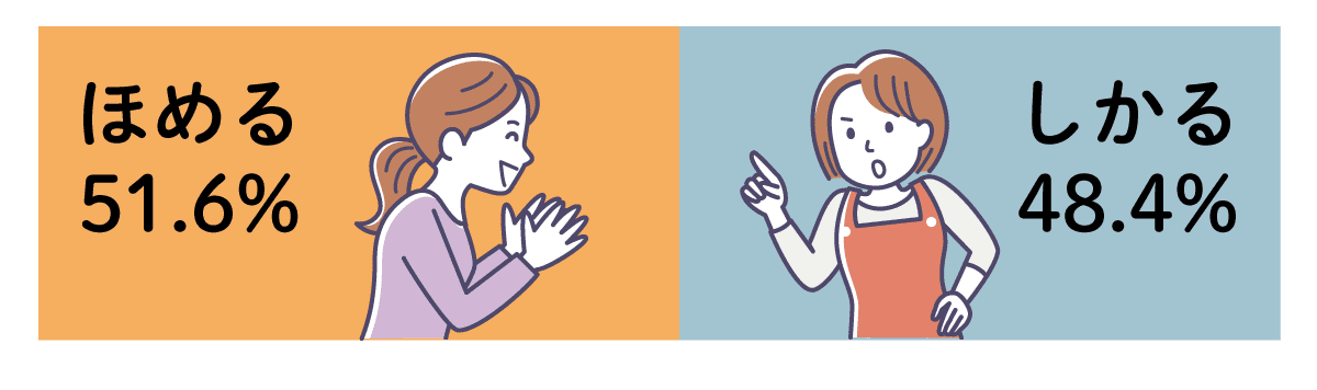 お子さまを「ほめる」と「しかる」どちらが多いか聞いたところ、「ほめる」が「しかる」より、約3%多い結果となりました。