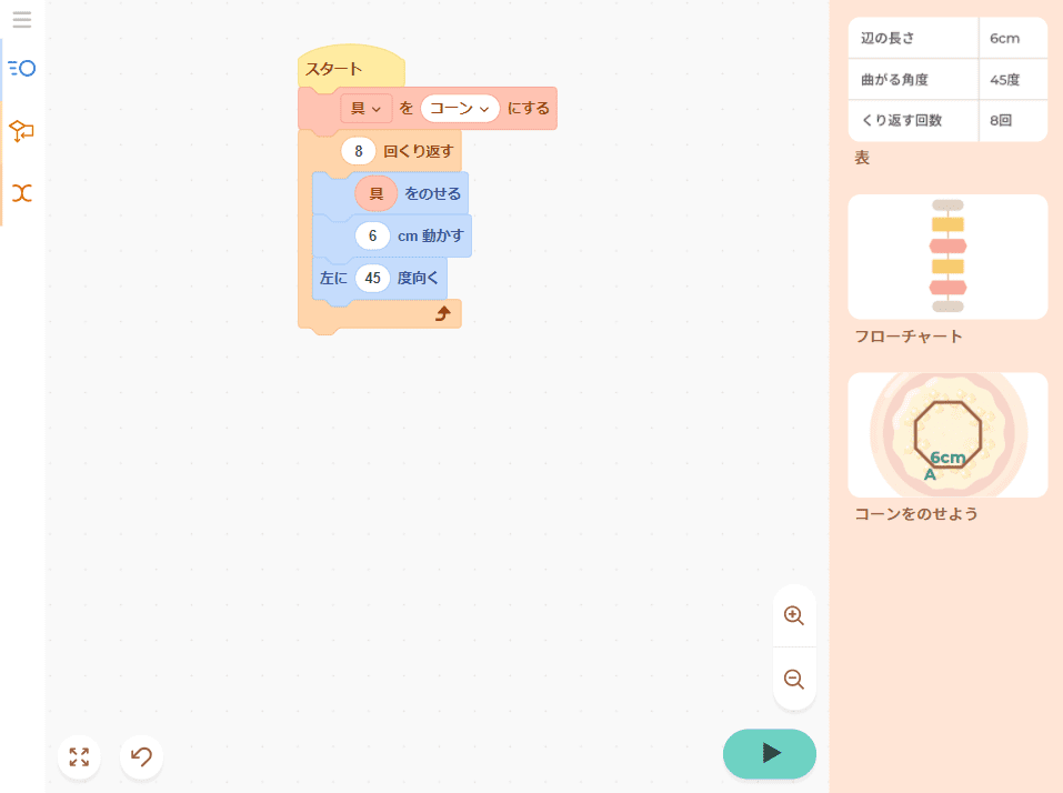 図形やわり算の知識を使ってプログラムを作成する中で、知識を活用することの意義を実感することができるでしょう。