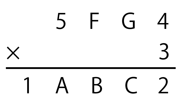 ※覆面算:数字の代わりに記号や文字が使われている計算式について、その数字が何になるかを考える問題。