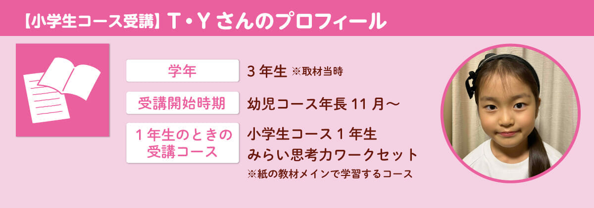 今回は、Z会を幼児コースから始め、現在は小学生コース(紙の教材メインで学習するコース)を受講されているT・Yさんのお母さまに、お話をうかがいました。
