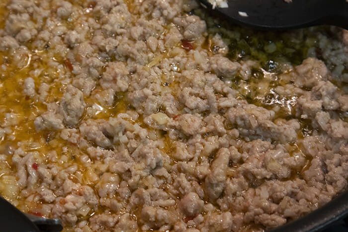 さらに豚ひき肉も加え、ほぐしながら炒める。