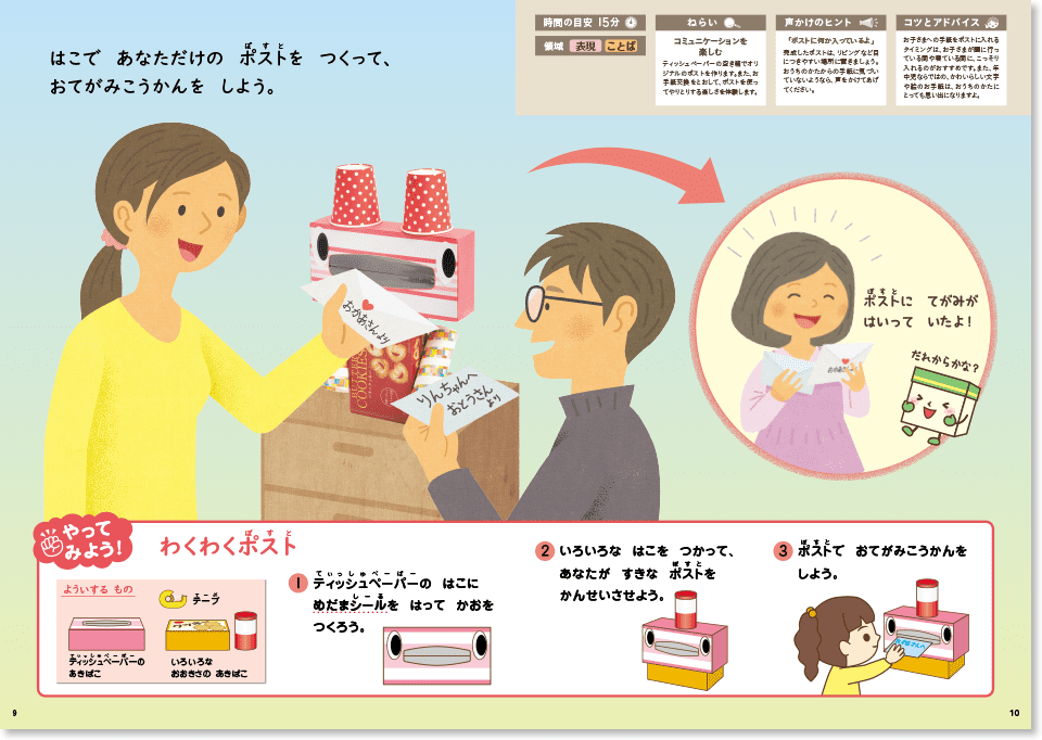 完成したらお手紙交換を楽しみ、ポストを使ってやりとりする楽しさを体験しましょう。