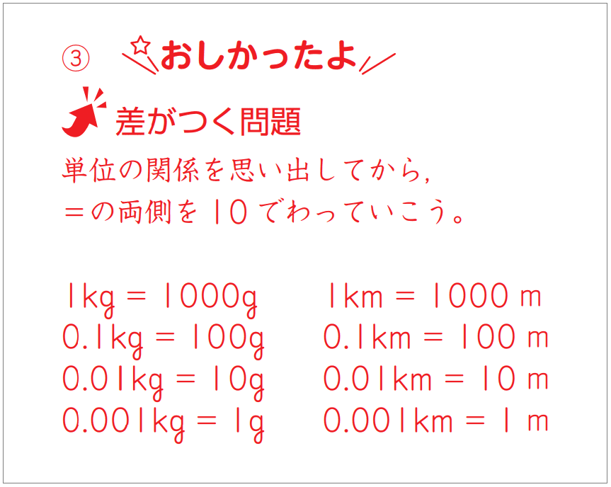 中学受験コース4年生では、赤字指導の中で「差がつく問題」をご紹介しています。「差がつく問題」は、「月例テスト」の中でも、高得点をとった会員と得点がふるわなかった会員の間で、とくに得点率の差が大きかった問題です。「この問題が解ければ、ライバルと差をつけられる」という具体的な目標を示すことで、お子さまの学習意欲をぐっと高めます。成績アップのカギとなる問題ですので、ぜひ注目していただき、フォローの声かけをお願いいたします。