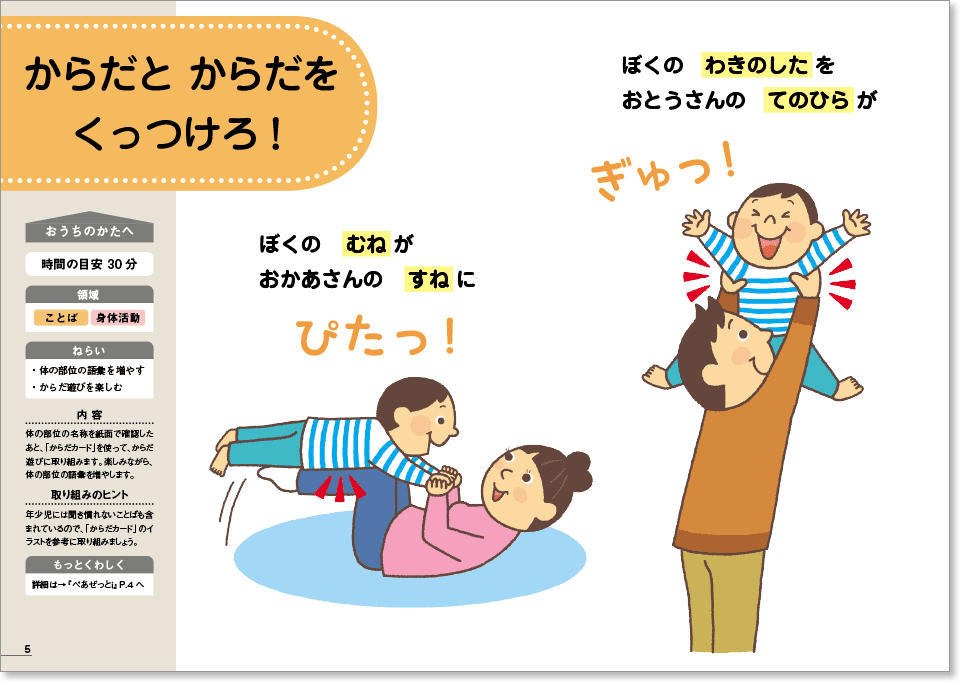 親子で楽しみながら、体の部位に関する語彙を増やしていきましょう。