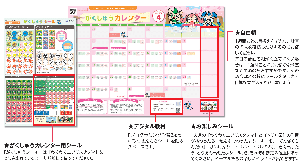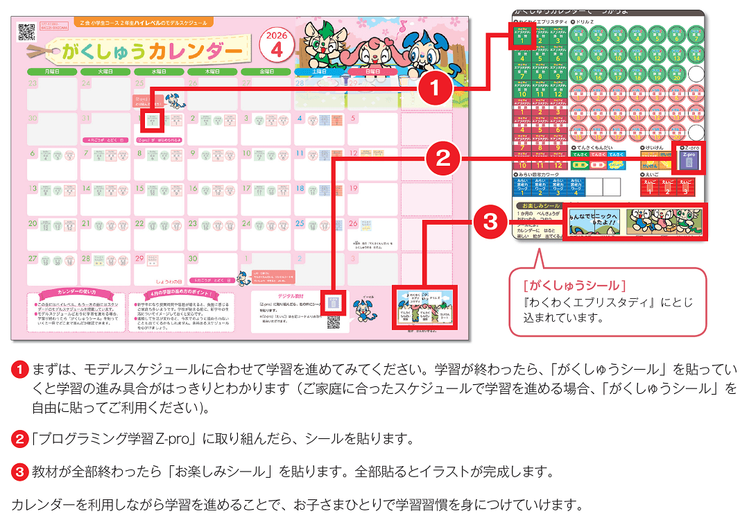 ※「がくしゅうカレンダー」は両面(ハイレベル/スタンダード)あります。受講しているレべルの面をご利用ください。