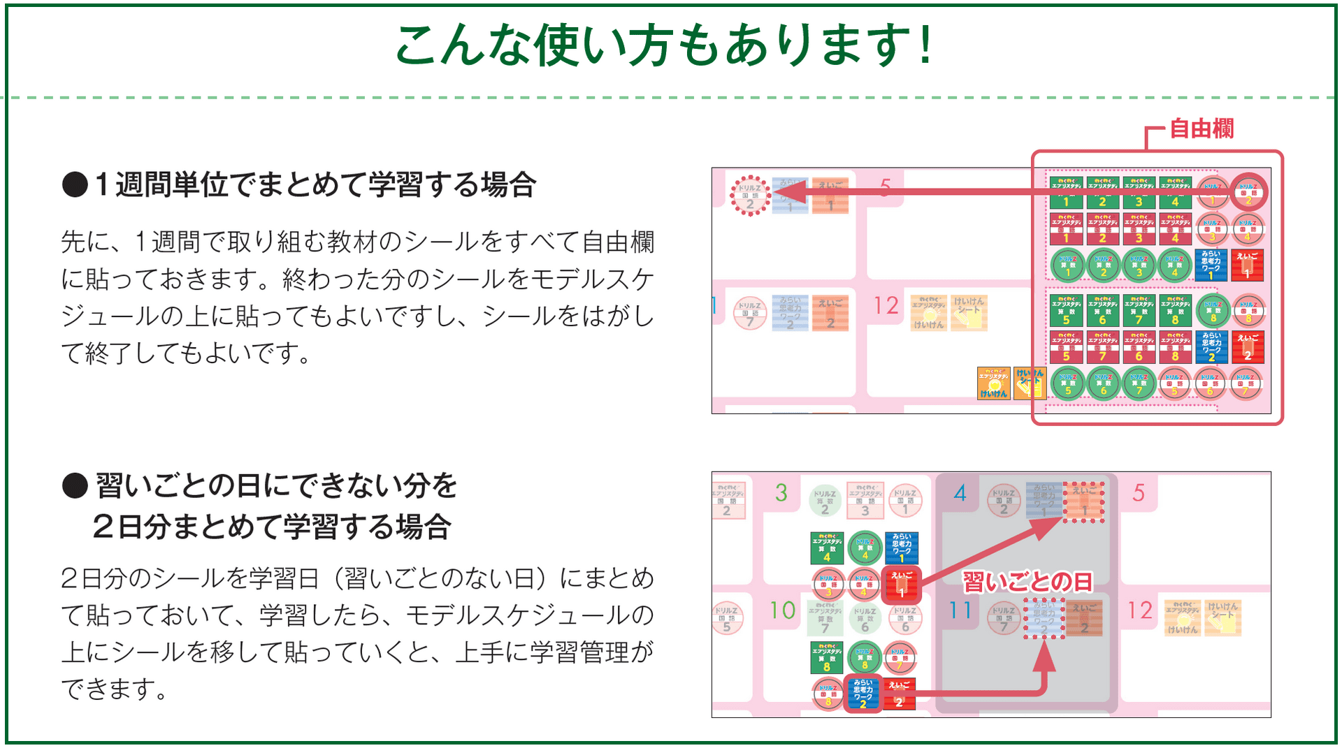 「がくしゅうカレンダー」「がくしゅうシール」の使い方